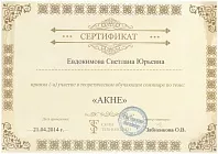 - 2013: ФГБОУ ДПО «Институт повышения квалификации Федерального Медико-Биологического агентства», дерматовенерология