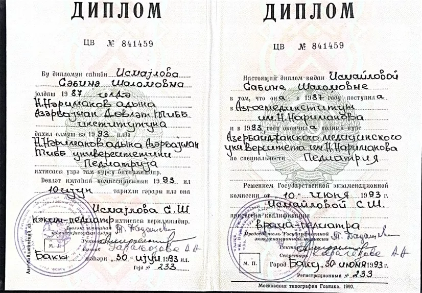 • 1994: АЗ ГОС Медицинский университет, педиатрия.