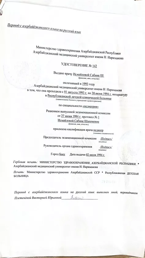 Врач-педиатр, высшая категория