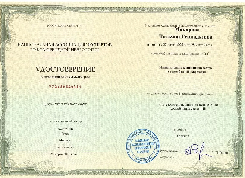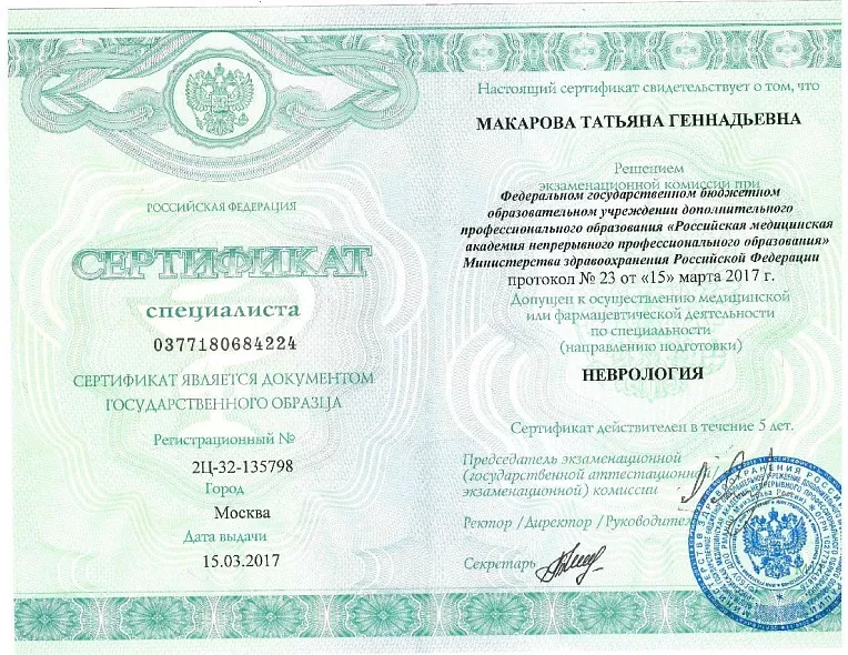 - 2017: РМАПО , г. МОСКВА. Кафедра неврологии