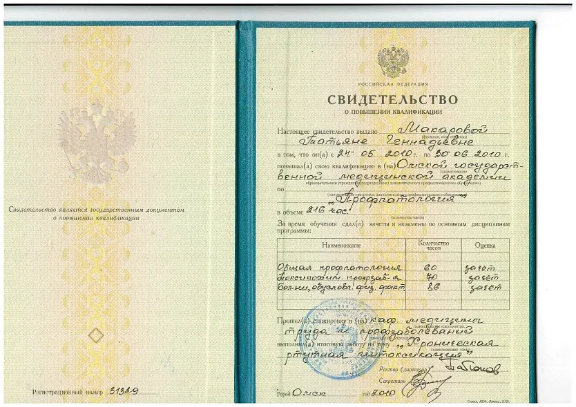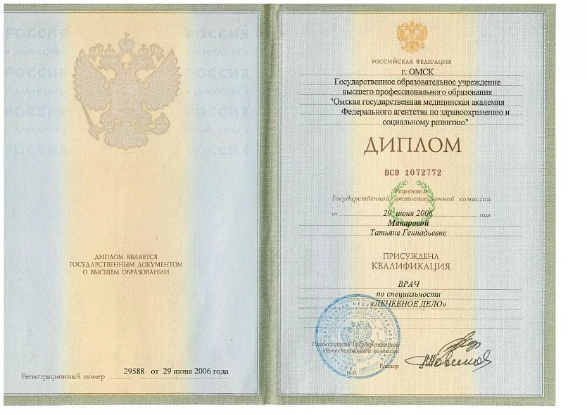 - 2000 – 2006: Омская государственная медицинская академия, лечебное дело
