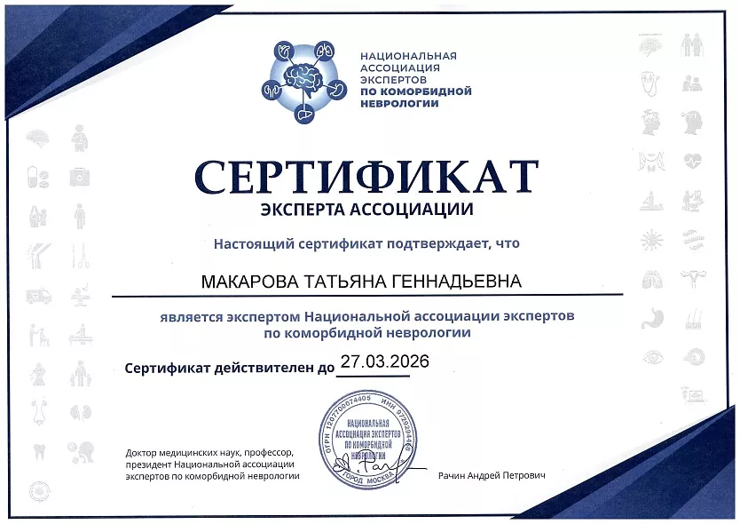 СпециализацияВедущий невролог, Член ассоциации неврологов России, IV-терапевт (врач превентивной медицины)