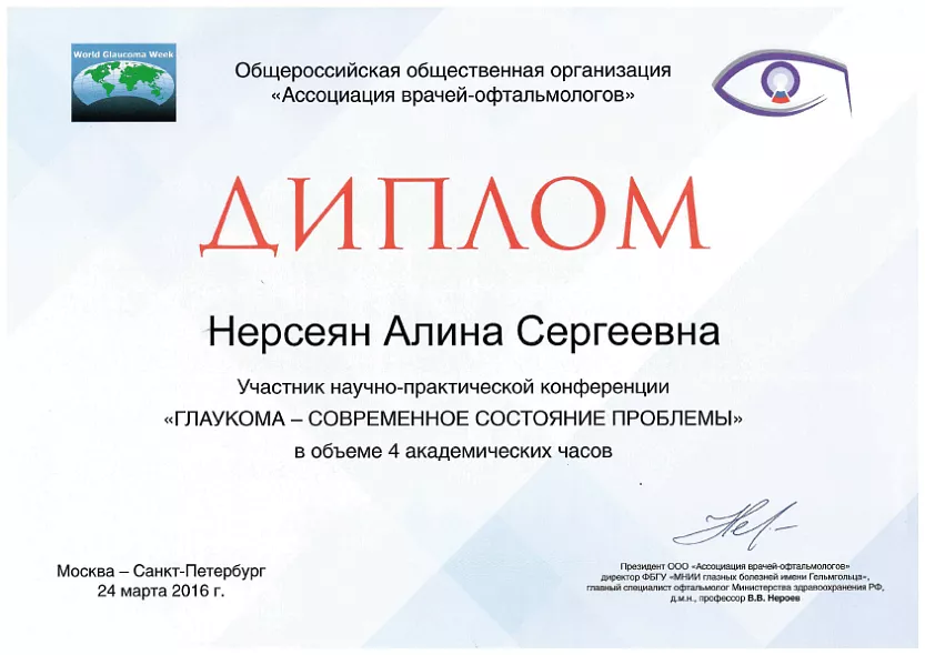 - Член ассоциации офтальмологов и страбизмологов