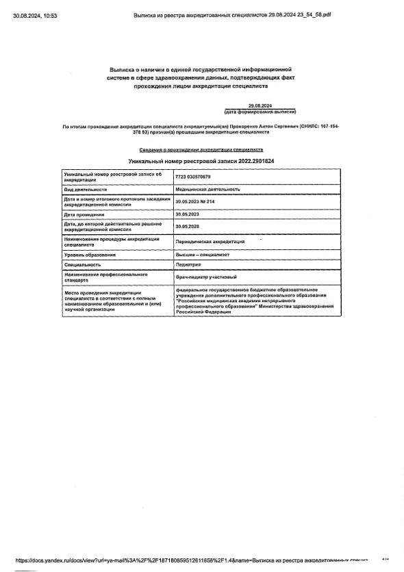 • 2023-2024:Врач-педиатр клиники Добрый доктор