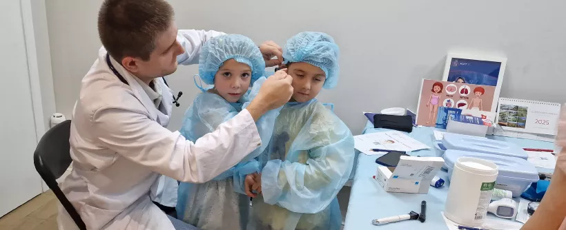 10 ноября 2024 года в театре МАСТ на ул. Соколово-Мещерской, где проходил ежегодный конкурс чтецов «Пролог», мы организовали медицинский мастер-класс для маленьких жителей Куркино. Детские врачи Мария Александровна Семенюк и Антон Сергеевич Прохоренко познакомили ребят с процедурами, которые их могут ожидать на приеме у педиатра.
