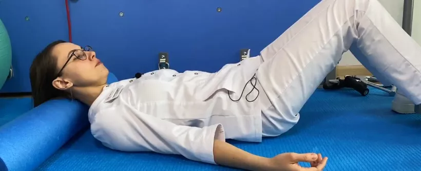 Можно выполнять, используя специальный валик для спины либо плотно свернутое в тугой рулон одеяло. Постарайтесь лечь на ровную поверхность, валик положите под основание черепа таким образом, чтобы он был на границе мягких и твердых тканей. Расслабьте плечи и медленно на выдохе выполняйте повороты головы в одну и в другую сторону. Очень медленно прокатывайте основание черепа по валику и отслеживайте зоны, где появляются болезненные точки. Старайтесь задержаться на них — до минуты на каждой точке, пока не угаснет ощущение напряжения. Дальше вернитесь в исходное положение и попытайтесь расслабиться, растянуть шейный отдел позвоночника.