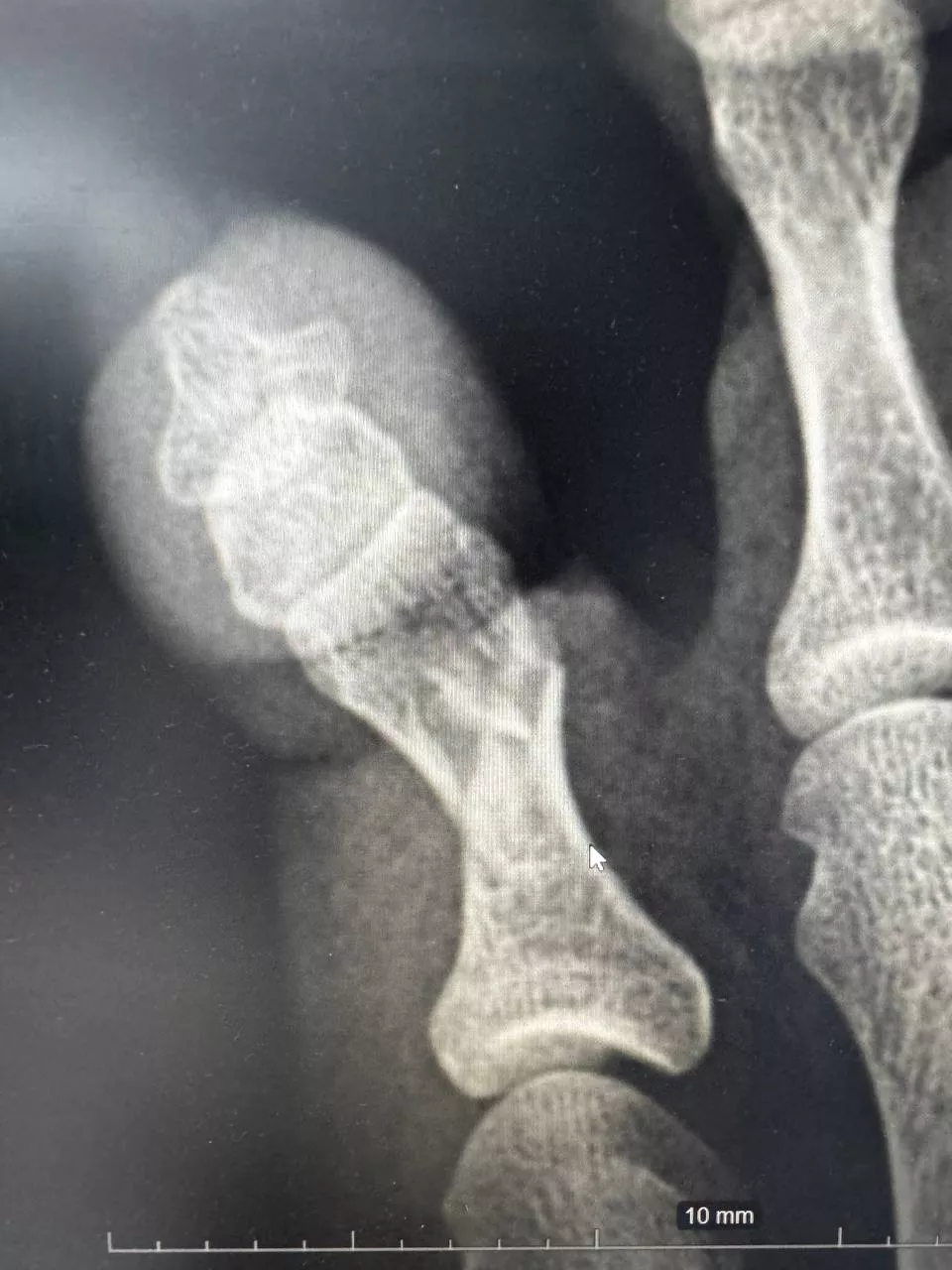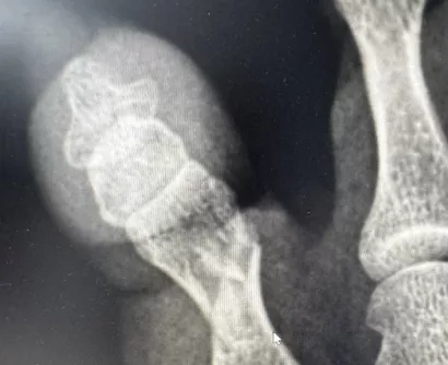 Нашему травматологу-ортопеду Ивану Александровичу Армейскому удалось «собрать» поврежденную кость пальца левой стопы. К нему на прием обратилась 42-летняя женщина, получившая перелом мизинца, запнувшись о ножку стола. Травма привела к боли и деформации пальца.