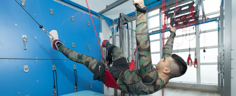 В основе терапии — нейромышечная активация в «подвешенном состоянии». С помощью подвесной системы Redcord и эластичных лент-амортизаторов можно разгрузить вес тела и подобрать упражнения для каждого пациента, которые не будут вызывать болевых ощущений. Добившись необходимого расслабления, подбирается адекватная нагрузка, помогающая разбудить «спящие» и неактивные мышцы и восстановить их функции.