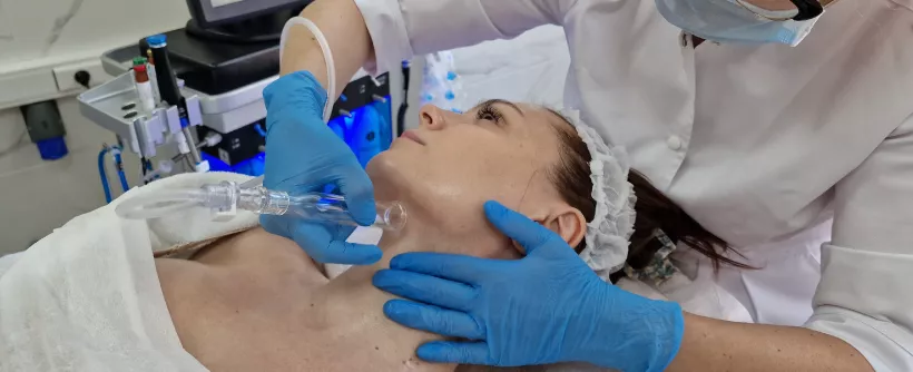 У нас в клинике появился новый аппарат HydraFacial (США), который позволяет выполнять очищение, увлажнение, омоложение и питание кожи. И все это за одну процедуру! Для ее проведения используются вакуумные насадки и несколько вариантов сывороток, отличающихся по составу.
