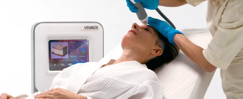 Не лазер и не RF, а фракционный микроигольчатый термолифтинг — с марта такую процедуру можно выполнить и в нашей клинике! У нас появился аппарат Vivace (Южная Корея), который вобрал в себя лучшее от обоих методов. Фракционное воздействие иглами обеспечивает безопасную глубину проникновения (до 3,5 мм дермы), а радиочастота — контролируемый нагрев дермы, допустимый для всех фототипов кожи и возможный в любое время года. Эту процедуру можно выполнять и на лице, и по телу!