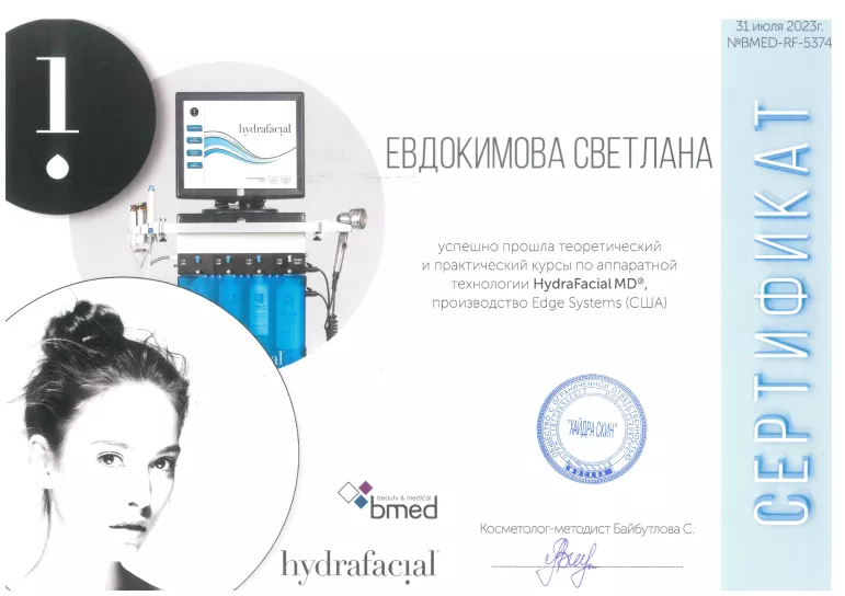 - 2016: МТ КОМед, методики работы с аппаратом Soprano XL, Alma Lasers