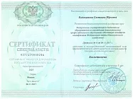 - 2013: ФГБОУ ДПО «Институт повышения квалификации Федерального Медико-Биологического агентства», дерматовенерология