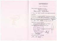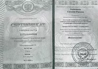 - 2018: ФГБОУ ДПО « Институт повышения квалификации Федерального Медико-Биологического агентства», дерматоонкология и дерматоскопия