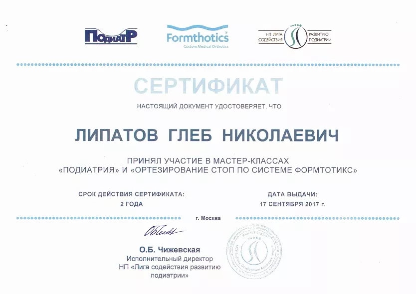 - 2014: ортезирование стоп по системе Формтотикс