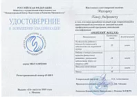 • 2019: сертификат «Сестринское дело»