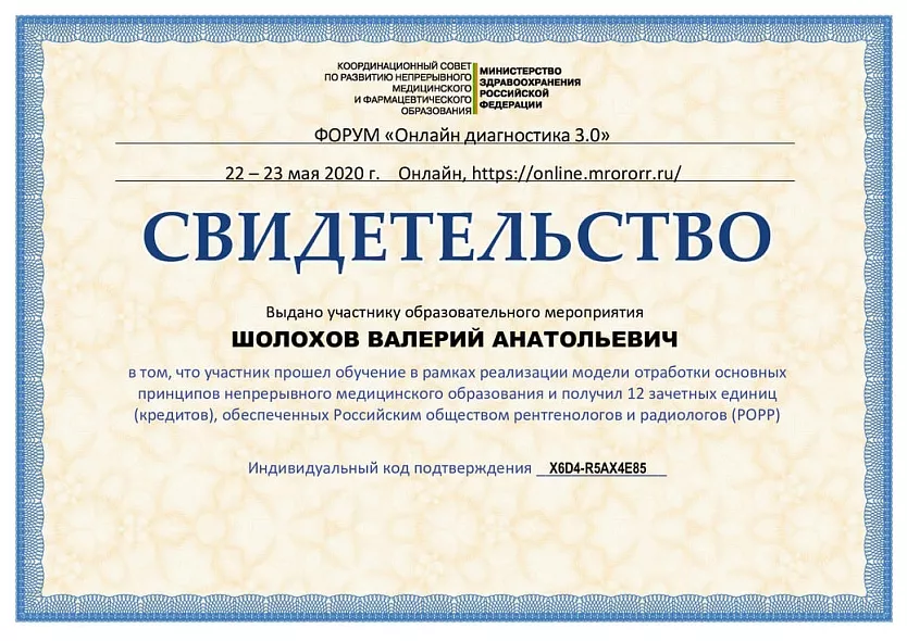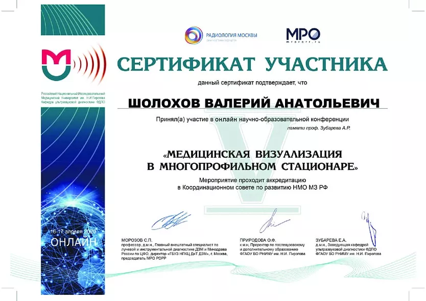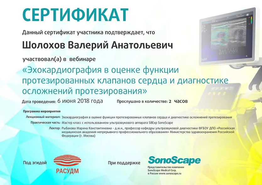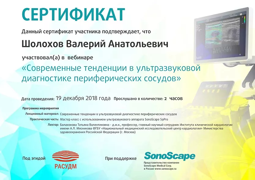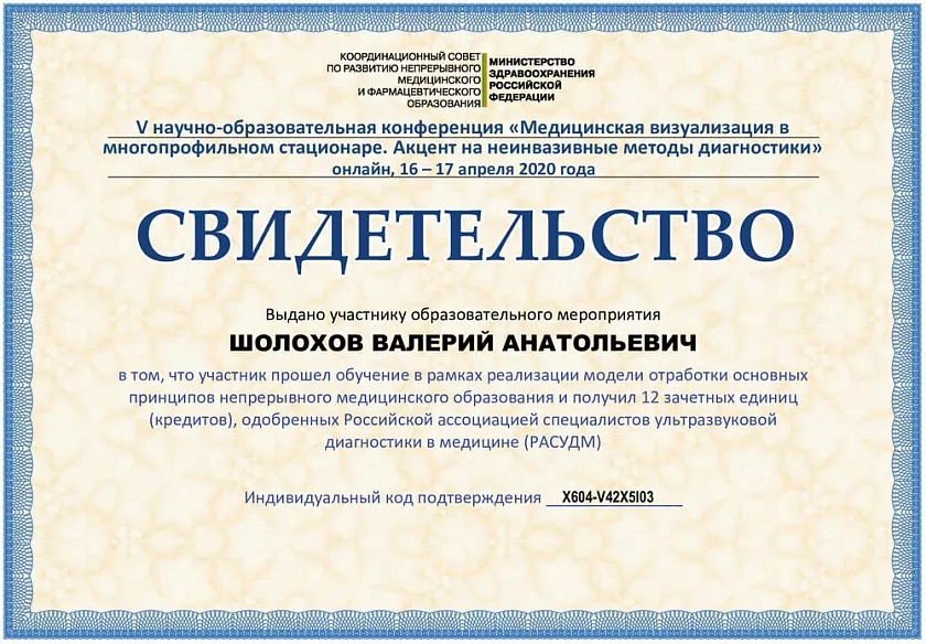 - 1992-1993: курс обучения «Основы ультразвуковой диагностики» ВГМИ кафедра внутренних болезней №2