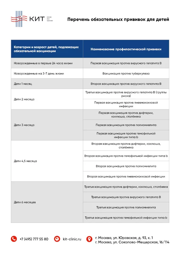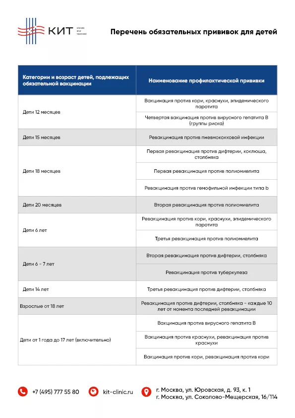 Перечень обязательных прививок для детей